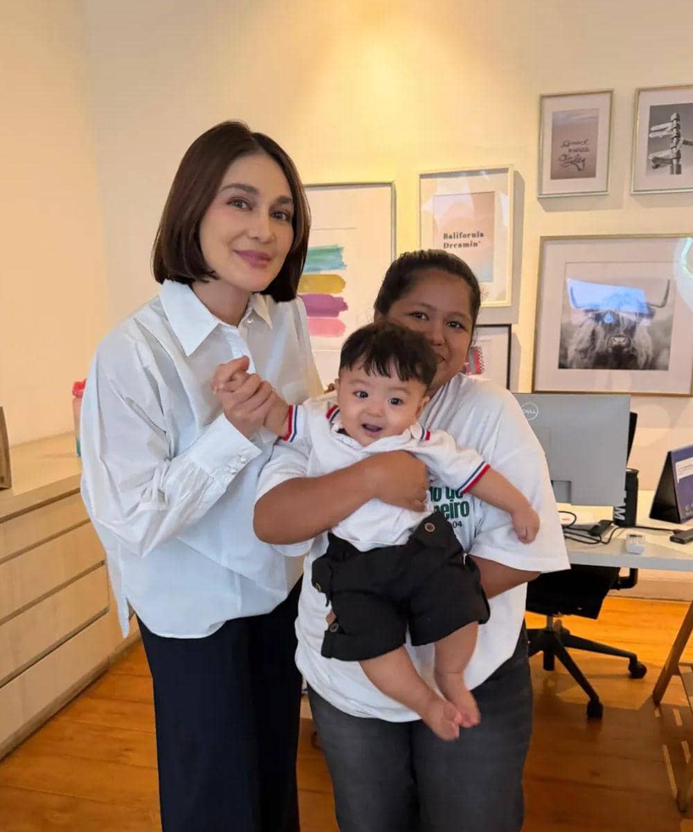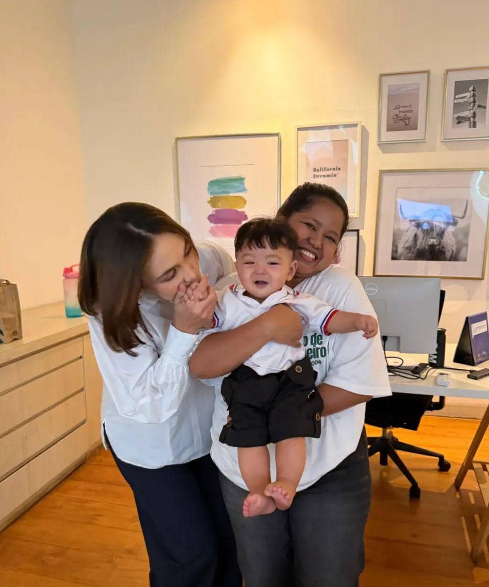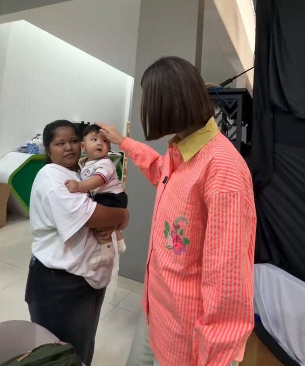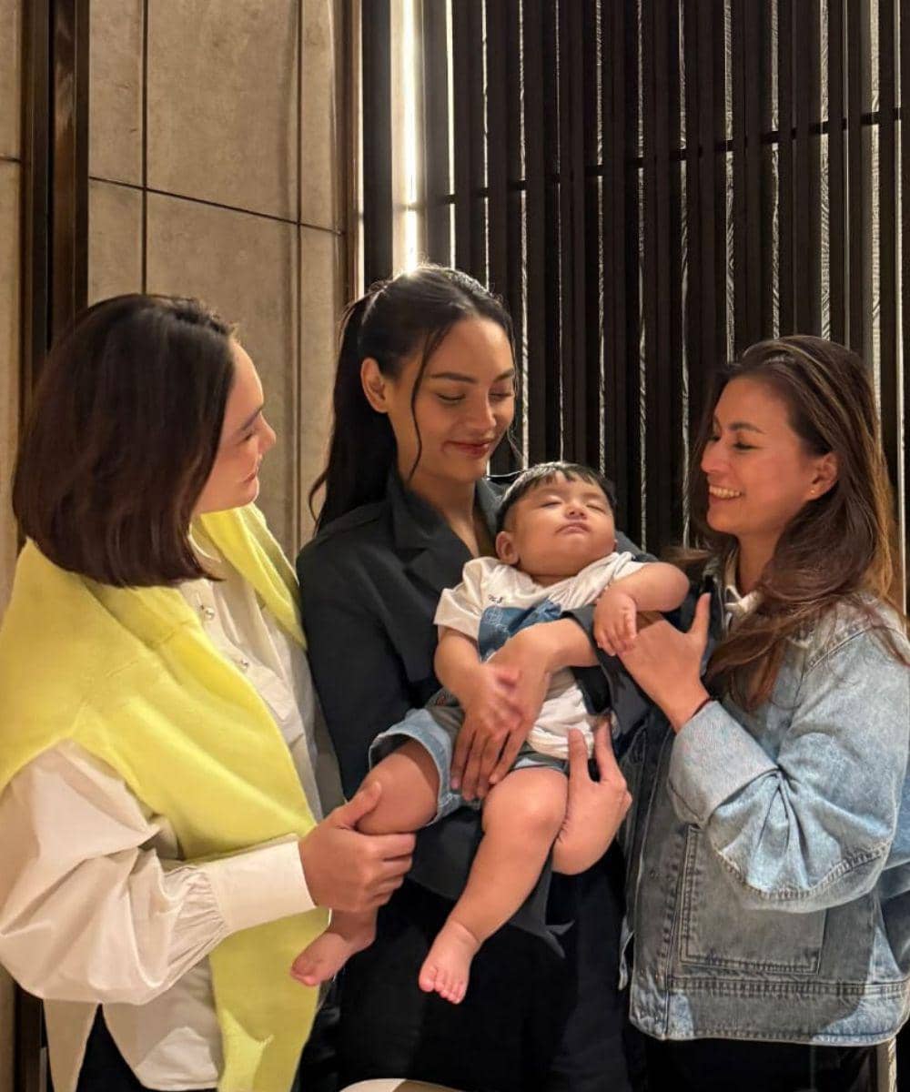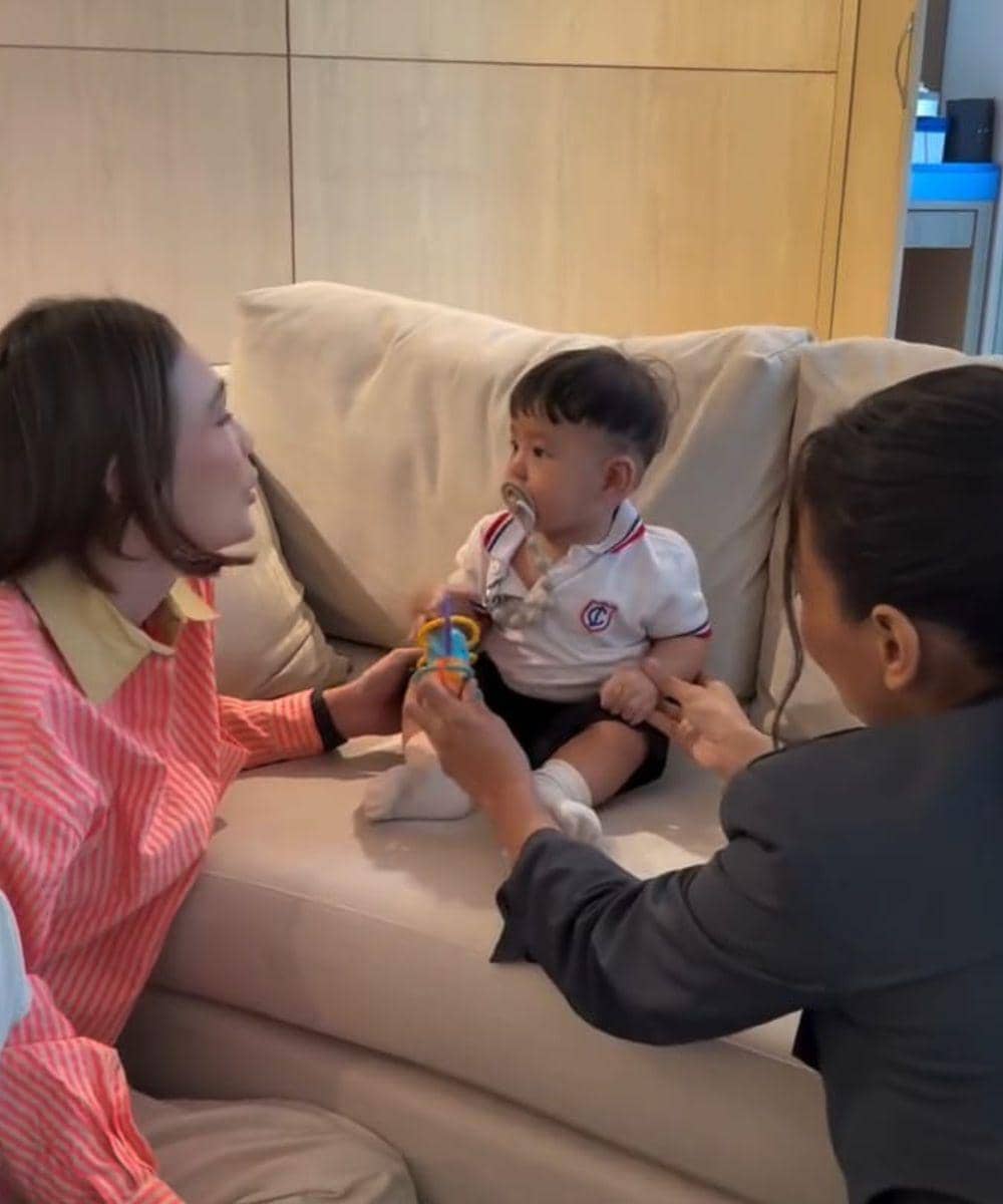 Pada foto lain dalam unggahan yang sama, Luna terlihat mencium tangan mungil Andrew dan Andrew tampak menunjukkan ekspresi senang yang menggemaskan. Sang pengasuh yang juga berada dalam foto tersebut terlihat ikut tersenyum, menambah kesan hangat pada kebersamaan itu.