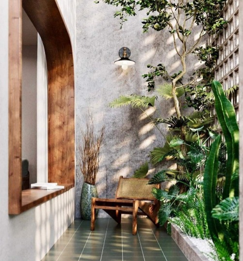 Konsep natural sangat cocok untuk menciptakan suasana santai. Material seperti kayu, anyaman, linen atau batu alam mendominasi gaya ini. Ruang terasa lebih hangat, organik dan memberikan kedekatan dengan alam.