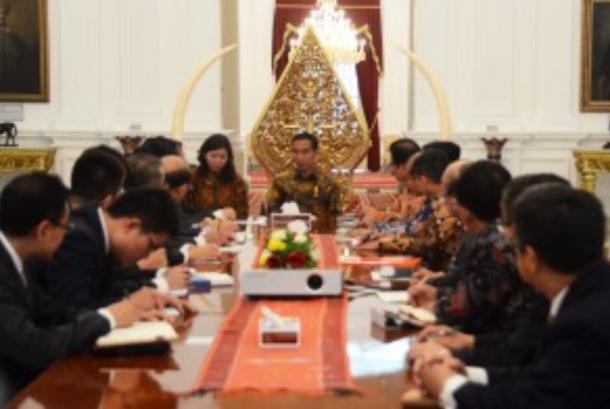 Presiden Jokowi menerima paparan hasil studi kereta api cepat Jakarta-Bandung dari Pemerintah China, di Istana Merdeka, Jakarta, Senin (10/8/2015). – (Sekretariat Kabinet)