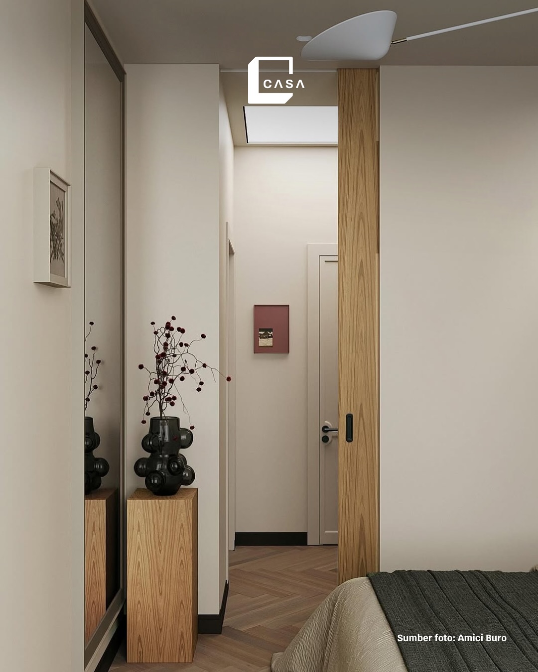 Selain itu, ukuran pintu yang ideal juga dapat membuat kamar terasa lebih lapang, rapi, dan nyaman secara keseluruhan, sekaligus mendukung sirkulasi udara yang lebih baik di dalam kamar. Namun, ukuran tersebut bukanlah patokan mutlak, yang artinya Anda tetap bisa menyesuaikan ukuran pintu kamar tidur dengan tinggi ceiling, kebutuhan ruang, serta desain interior rumah agar terlihat proporsional dan nyaman digunakan.