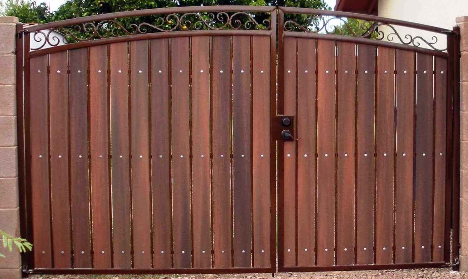 Kombinasi besi dan kayu menjadi salah satu model pagar besi klasik minimalis yang sangat populer karena mampu menghadirkan kesan hangat sekaligus modern. Material kayu memberi sentuhan natural, sedangkan besi tetap mempertahankan struktur kuat dan aman.
