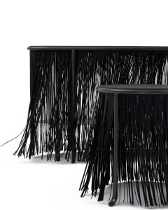 Dengan tassels dan fring kulitnya, meja-mejanya karya seniman dan pematung Dozie Kanu akan mengubah cara orang memandang cowboy. “Kebudayaan cowboy Texas sebenarnya adalah istilah merendahkan yang digunakan untuk mengacu pada cowboy kulit hitam,” katanya dalam wawancara dengan Pasarmodern.com. Kanu lahir dari orang tua Nigeria dan dibesarkan di Texas. Koleksi meja Dozie Kanu akan menjadi fokus dalam presentasi Knoll di Salone del Mobile 2026 dan juga akan dipamerkan di Bar Nico, Milan.