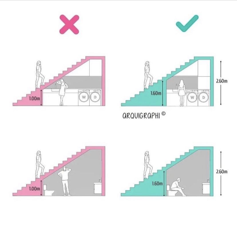 Pastikan tinggi ruangan cukup nyaman untuk digunakan. Mengingat bentuk ruangan mengikuti kontur tangga, tinggi terkecil sebaiknya tidak terlalu pendek.