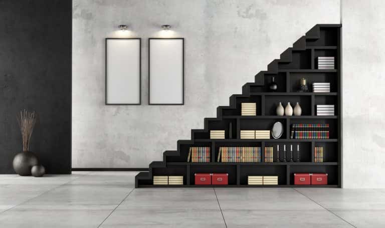 Anda tidak perlu takut kehilangan ruang karena adanya tangga. Anda bisa menyulap tangga menjadi tempat penyimpanan tambahan.